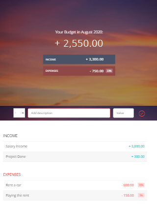 With a straightforward and intuitive UI, you can input an amount that can be either an expense or an income, add a description, and finally, the amount itself.