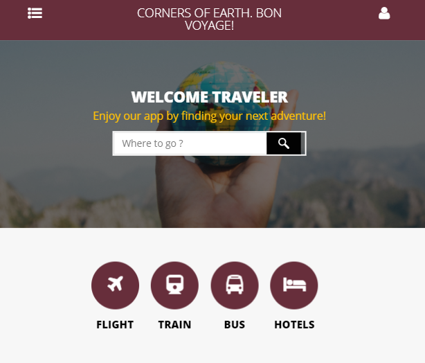 Travel App | Corners of Earth. Bon Voyage!